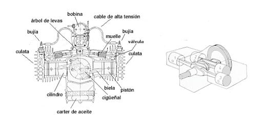 Motor con cilindros horizontalmente opuestos (motor boxer): es un caso particular de los motores de cilindros